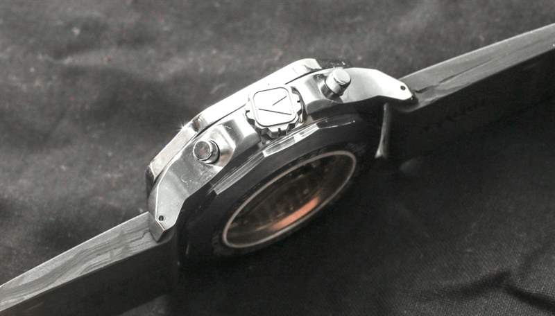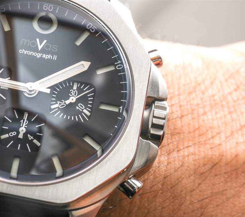 MoVas Military Chronograph II 是一款相當大而重的鋼制手表,采用 45 毫米寬的方形/墊形表殼,厚度也約為 17 毫米。MoVas 提供藍寶石水晶和有機玻璃水晶兩種選擇,這實際上是為了提供有機玻璃水晶所提供的獨特溫暖——但當然,并非所有買家都希望處理與藍寶石相比它更容易劃傷的事實。該表殼還可以防水 100 米——沒有旋入式表冠或旋入式按鈕——即使歐洲和日本品牌在許多方面都擊敗了 MoVas,也感覺制作精良。話雖如此,這感覺更像是一款高度精致的“項目”手表,而不是出廠時的東西,這或多或少是 MoVas 手表的樣子。