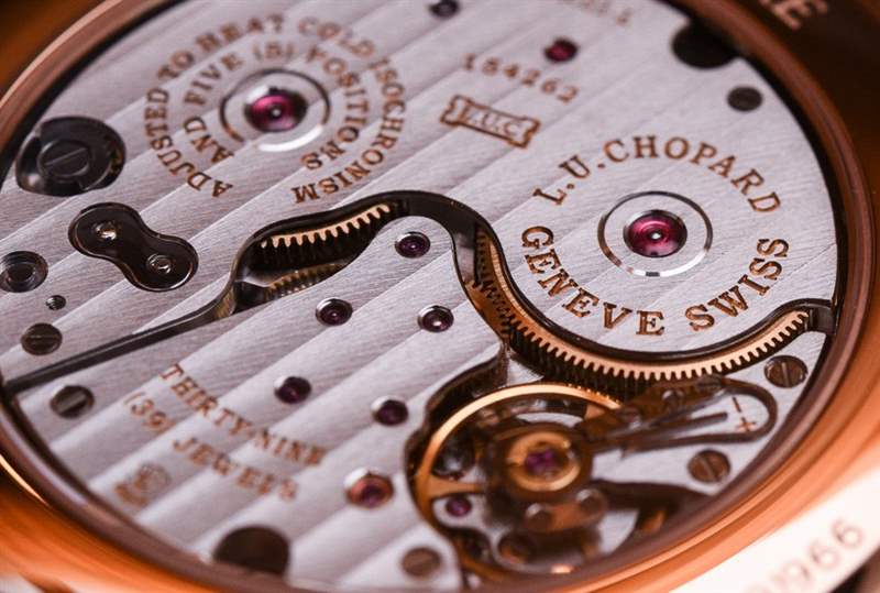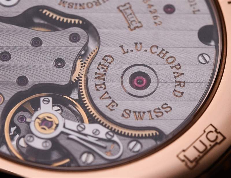 蕭邦雖然還沒有達到許多品牌的精加工標準,但已經非常接近了,經驗豐富的收藏家認為這些標準有助于定義優質機芯的精加工。在談論 98.01-L 機芯時,解釋這是一個很好的起點,它忠實地占據了手表的大部分底蓋窗口。手動上鏈,機芯由 223 個零件制成。