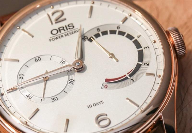 您想要 Oris Calibre 110 手動上鏈機械機芯嗎?它與所有其他內部制造的機芯有何不同?光看表盤就知道機芯是用一個小秒盤指示時間的。它還具有動力儲存指示器。不僅僅是任何動力儲備指示器,而是“非線性動力儲備指示器”。聽起來很花哨,但它是什么?好吧,這不是好事或壞事,只是動力儲備指示器的風格略有不同。你所擁有的是一個帶有指示器指針的秤,當它滿時移動得更快。這意味著一到兩天的動力儲存之間的空間大于兩天和三天之間的空間——而且從那里開始變小。在某種程度上,這更準確地代表了主發條是如何放松的,