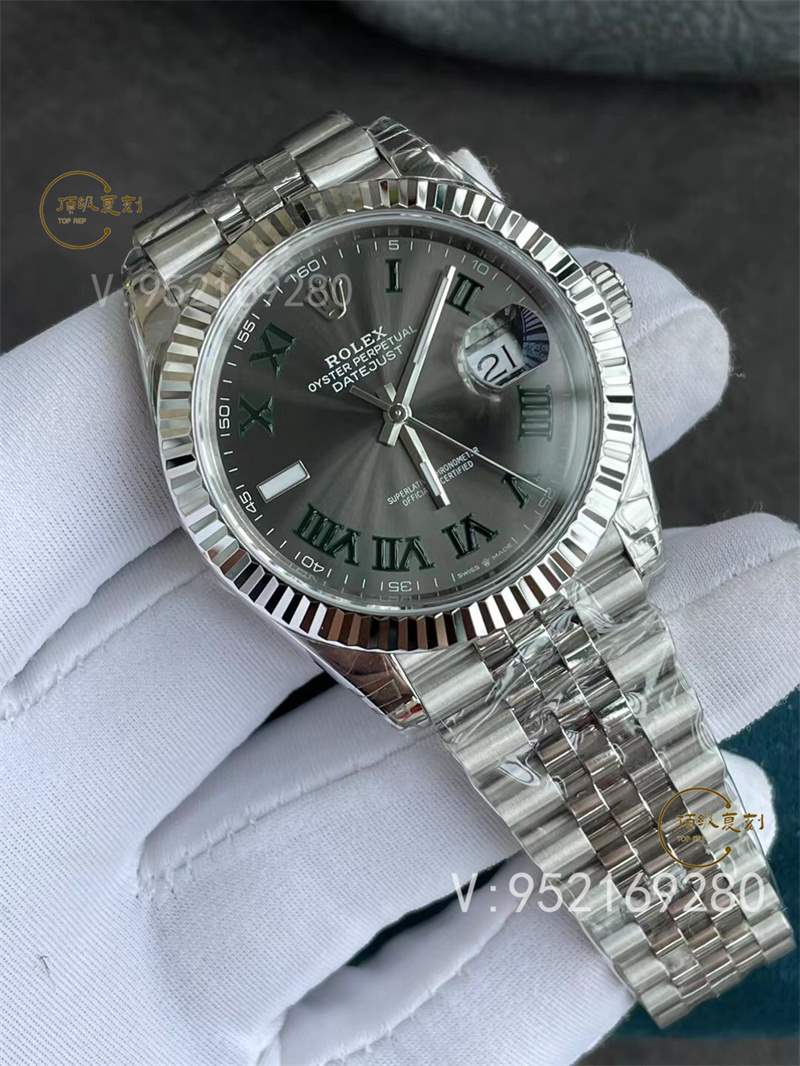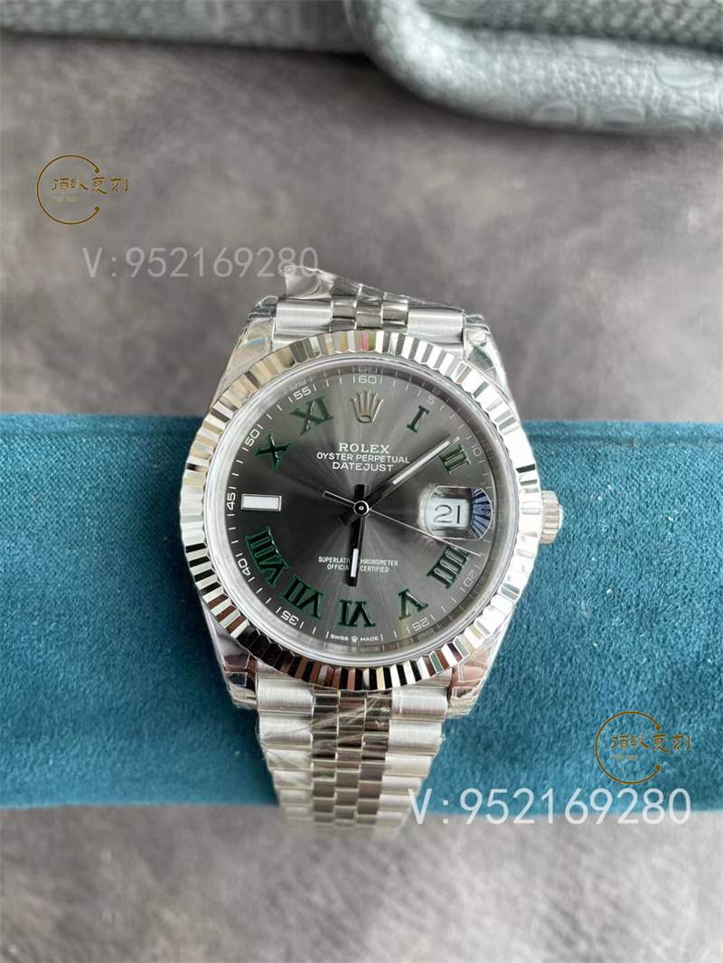 VS廠勞力士日志型41毫米綠勞力士復(fù)刻表的表殼采用904精鋼打造,與VS廠的正品一致!經(jīng)過VS廠的精細打磨拋光,呈現(xiàn)出來的視覺效果也與正品幾乎一致,鏡面采用藍寶石材質(zhì),同時經(jīng)過防眩光技術(shù)處理,讀取時間數(shù)據(jù)效果非常好,而且硬度高,不易刮花。太陽紋理灰盤表面還原也非常精細到位,字面字體非常工整,表盤內(nèi)外圈數(shù)字或英文字體的比例與原裝字體完全一致,9 點鐘位置條形刻度周圍經(jīng)過圓潤打磨,與原裝字體保持一致,每一個細節(jié)都非常細致。12點鐘位置多了勞力士手表的經(jīng)典標志,整體立體感十足,看起來飽滿。對于新版日志,這里最大的特點就是6點鐘上方的表冠標志,這也是與原版同步的最新版本。