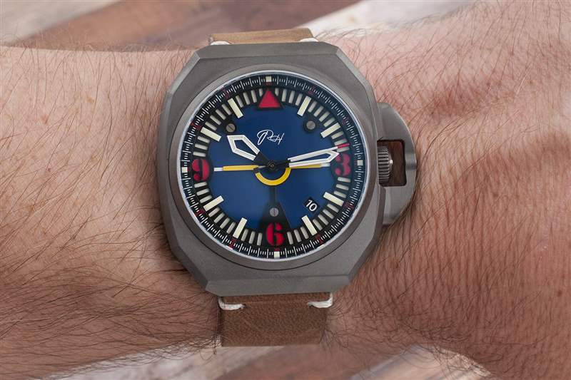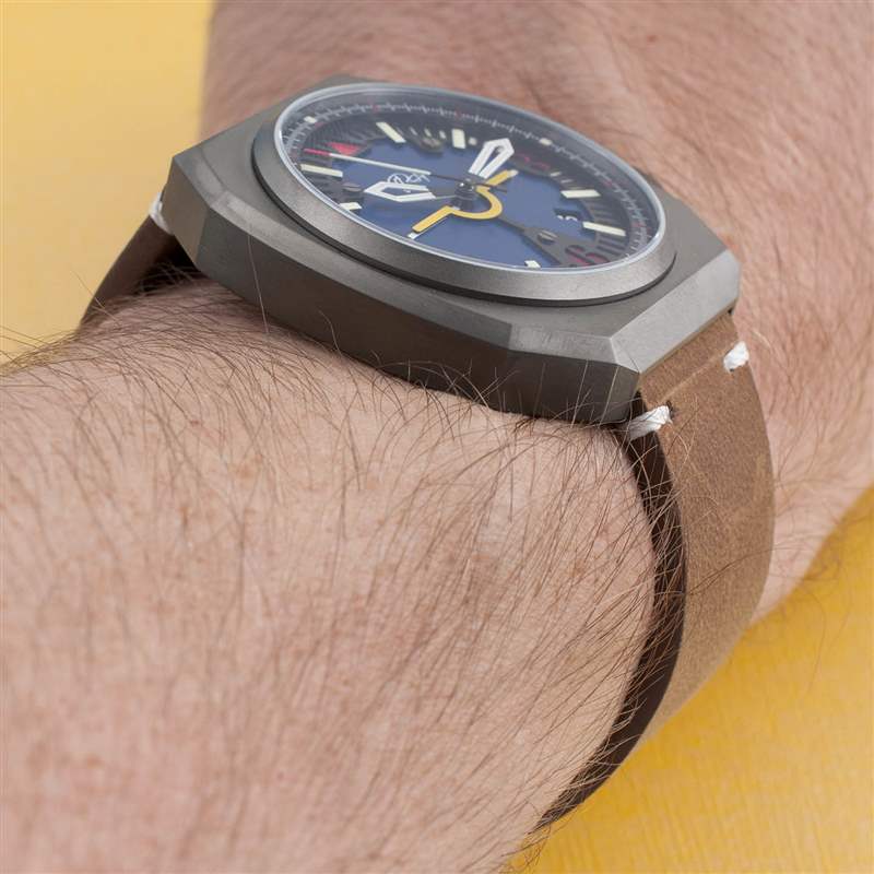然而,表冠護(hù)罩使手表佩戴起來(lái)比其 42.5 毫米寬的尺寸讓您相信的要大。表殼也接近正方形,這使得它比圓形手表占用的空間更大(想想對(duì)角線測(cè)量,就像電腦顯示器一樣)。盡管如此,其無(wú)表耳設(shè)計(jì)使其適合較小的手腕佩戴,因?yàn)楸矶帘矶拈L(zhǎng)度僅為 47 毫米。大多數(shù)人還會(huì)發(fā)現(xiàn)其 13.1 毫米的整體厚度也很適合佩戴,20 毫米的表耳寬度意味著您最喜歡的所有表帶都可以裝在上面。